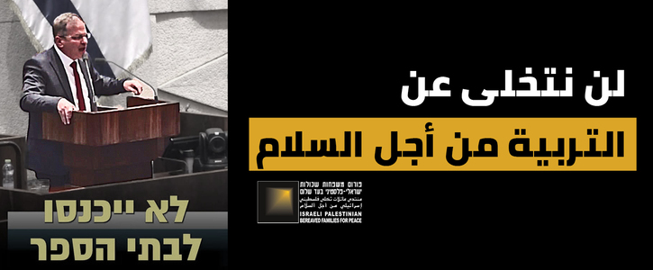 نحن، المواطنات والمواطنون، ندعو وزير التربية والتعليم يوآف كيش إلى وقف سياسة تكميم الأفواه، وإعادة برنامج "لقاءات الحوار" التابع لمنتدى العائلات الثكلى الفلسطيني–الإسرائيلي إلى المدارس، وتمكين الطلاب من التعرّف على خطاب السلام والمصالحة.